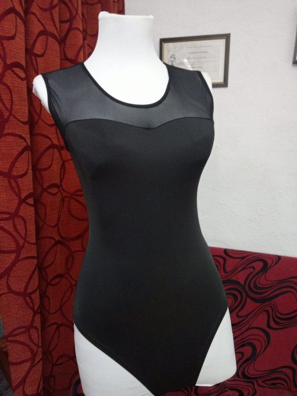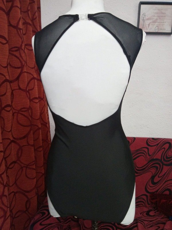 Malla de danza color negro con microtul y espalda abierta.