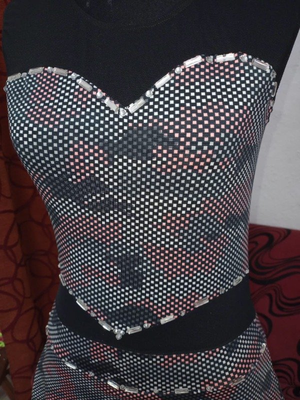 Malla de lycra de primera calidad estampada, con microtul, el pecho forrado y piedras colocadas!