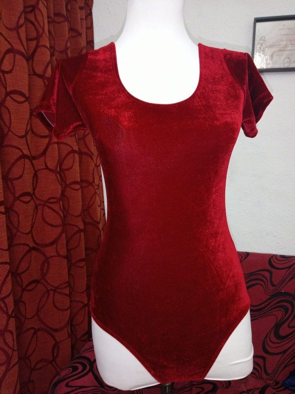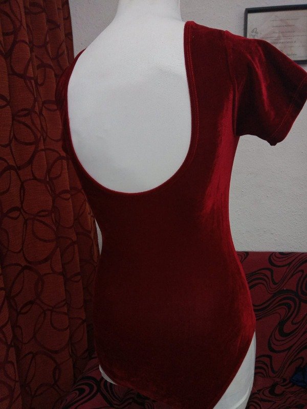Malla de danza de terciopelo, con cuello en "U", espalda cerrada y mangas cortas.
