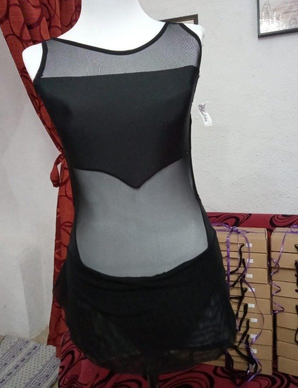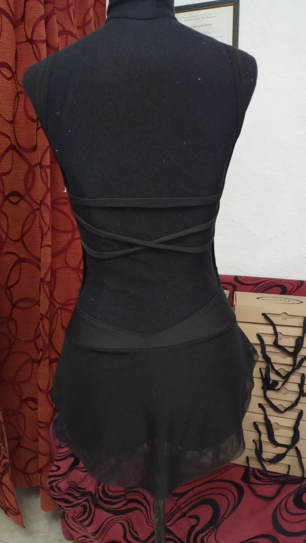 Malla negra de lycra con microtul, con pollerin doble tambien de microtul ! Espalda abierta con tiritas.