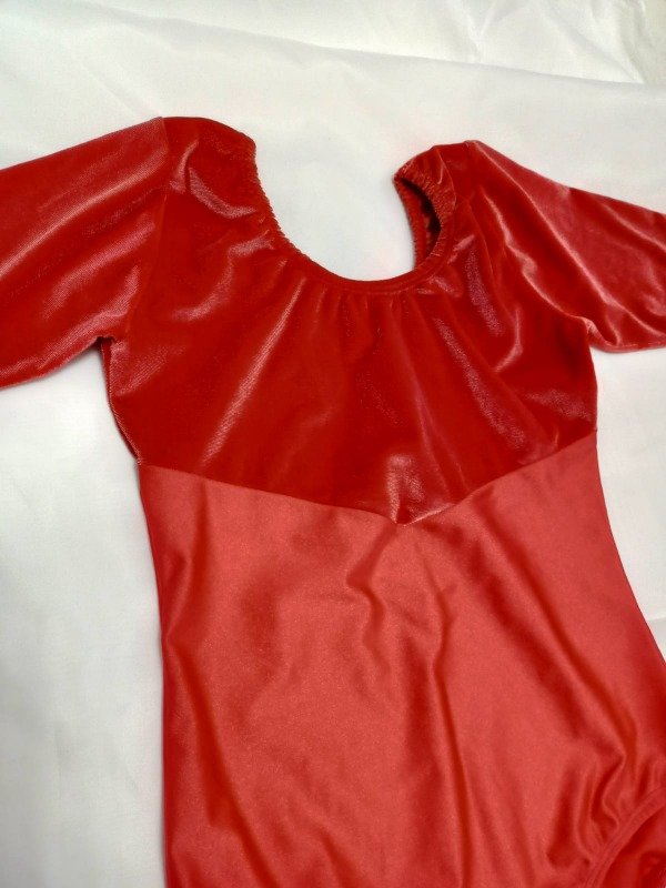 Malla sin pollerin, de lycra con terciopelo color rojo y el pecho forrado. Sin pollerin