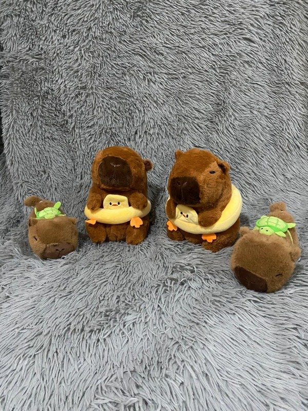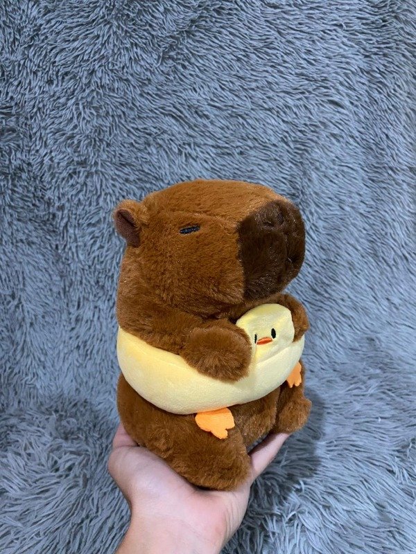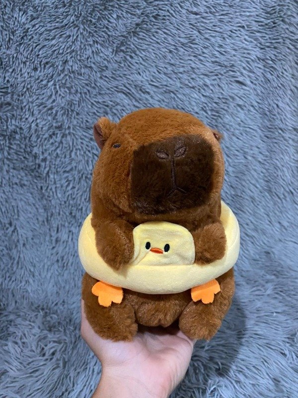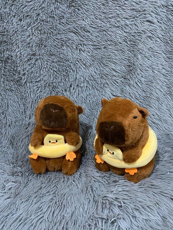 Peluche carpincho con flotador de patito. Super tiernos y abrazables!