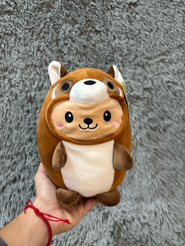 Peluche squishy disfrazado! mide aprox 22cm x 16cm, super suaves, con detalles bordados y relleno siliconado por lo que siempre vuelve a su forma original.